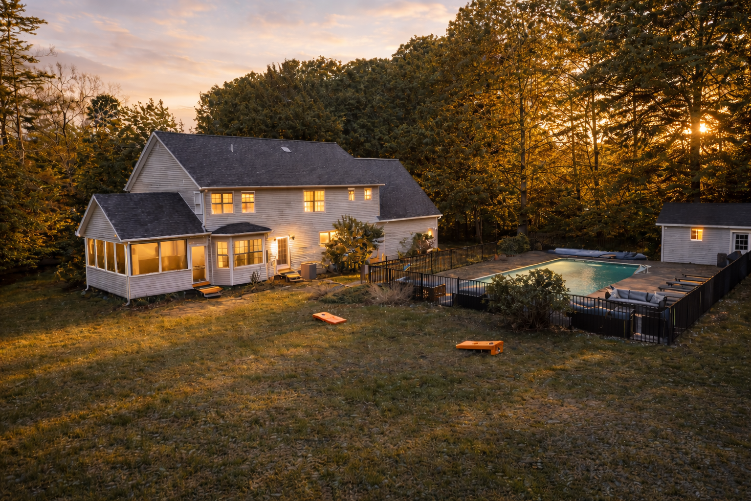 ☀ Inground backyard pool surrounded by woods