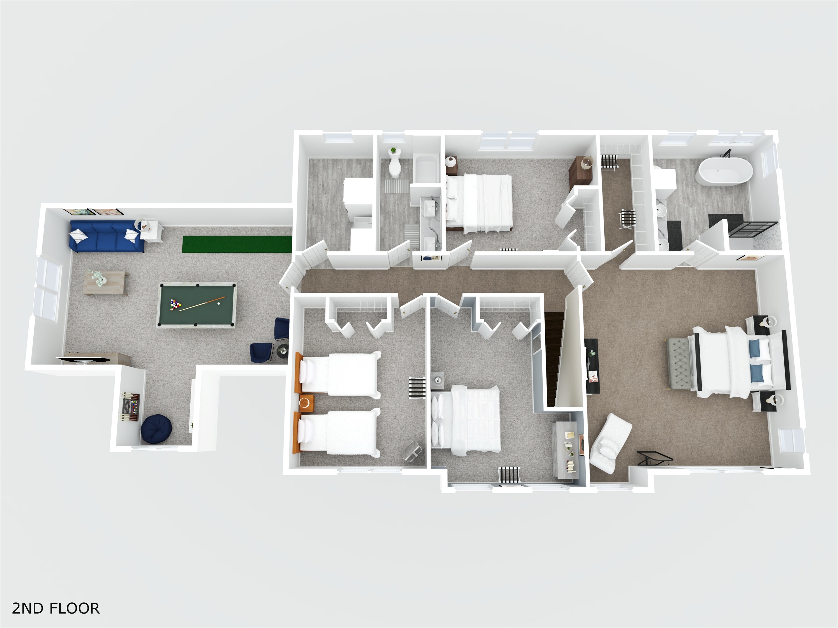 With over 3,300 square feet, the home features an open and modern layout that’s perfect for gathering. Guests can relax in the living room, dining room, or game room after days spent at the racetrack or exploring downtown Saratoga.