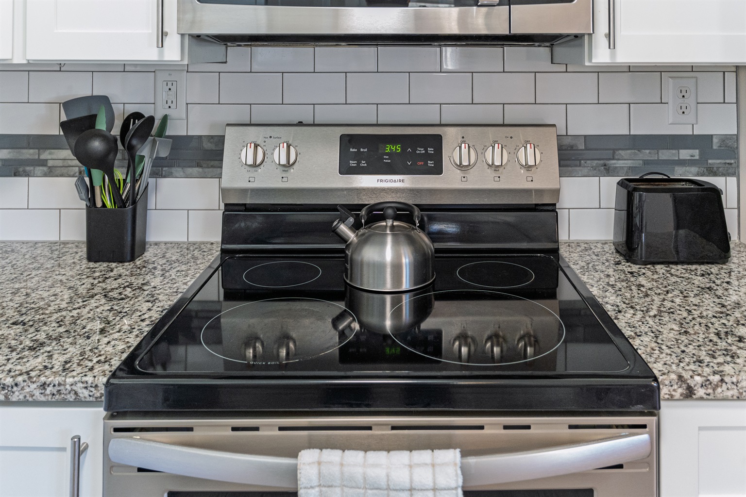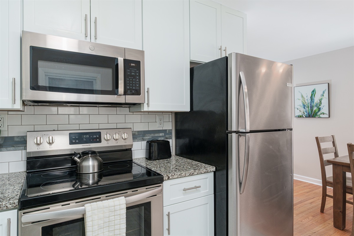 Go out and enjoy one of our amazing local restaurants or you can stay in and cook a gourmet meal. The kitchen has brand new stainless appliances throughout and is fully stocked with pots and pans and utensils and a stovetop kettle for tea. We have a crockpot for winter comfort foods and a blender for refreshing summer cocktails.